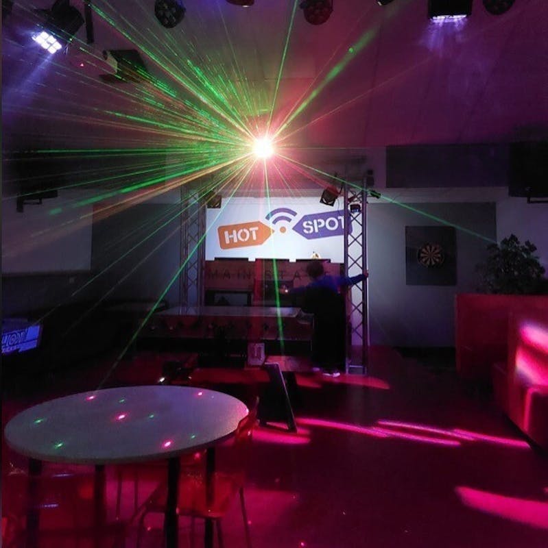 Mainstage: dj-booth, pooltafel, dart-zone, airhockey, tafelvoetbal, karaoke, bar, beauty- booth.
