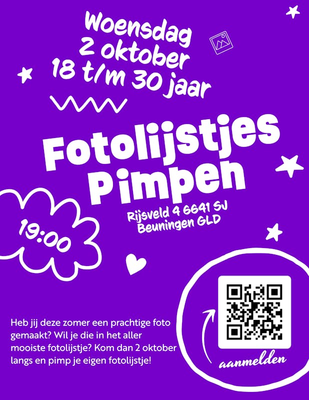 Ben je graag creatief bezig? Wil je graag leeftijdsgenootjes ontmoeten? En ben je tussen de 18 en 30 jaar? Kom dan gezellig op 2 oktober fotolijstjes pimpen!