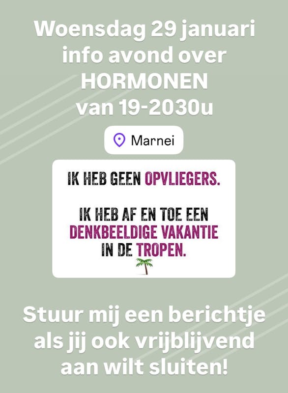 Meld je dan aan om vrijblijvend aan te sluiten bij de informatieavond over HORMONEN!