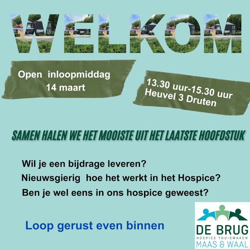 Het HospiceHospice De Brug Maas en Waal in Druten wil een plek zijn waarmensen in een huiselijke warme sfeer in alle rust afscheid kunne......
