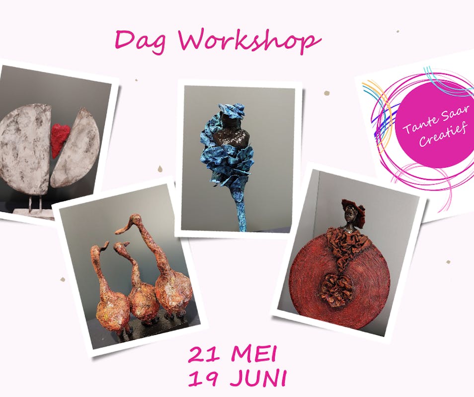 Tijdens deze dagworkshop maak je een beeld, sculptuur of schilderij met powertex aan de hand van een voorbeeld of naar eigen idee. De prijs is vanaf 85.00€ en hier zit een heerlijke lunch bij inbegrepen. Voor informatie en inschrijven stuur je mij een berichtje via www.tantesaarcreatief.nl/contact bellen kan natuurlijk ook 06-26331098