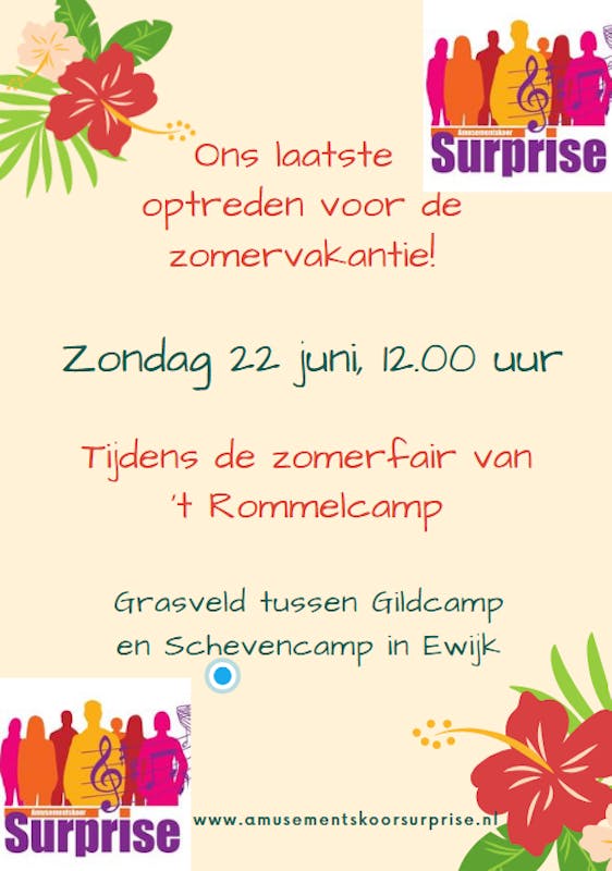 Zingen is onze hobby dus iedere dinsdag doen we dat met veel plezier! Wij zijn Amusementskoor Surprise uit Ewijk, een gemengd koor dat v......