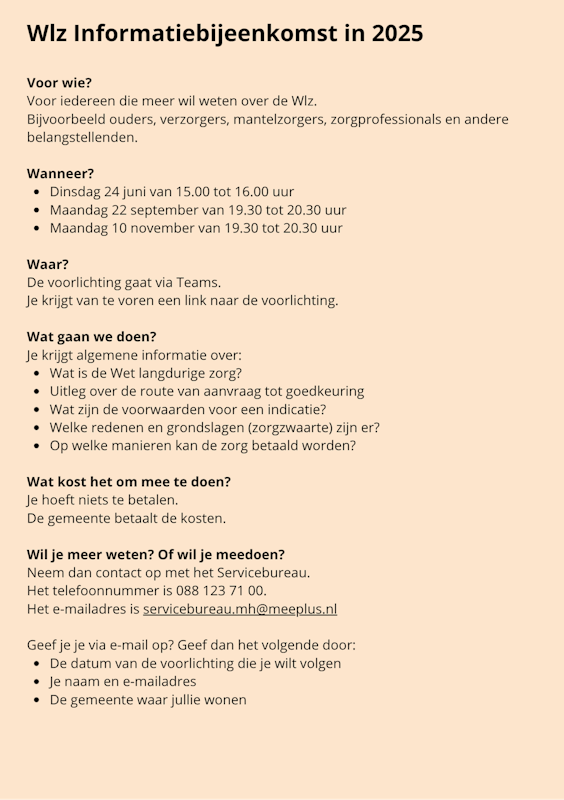 Voor iedereen die meer wil weten over de Wlz.