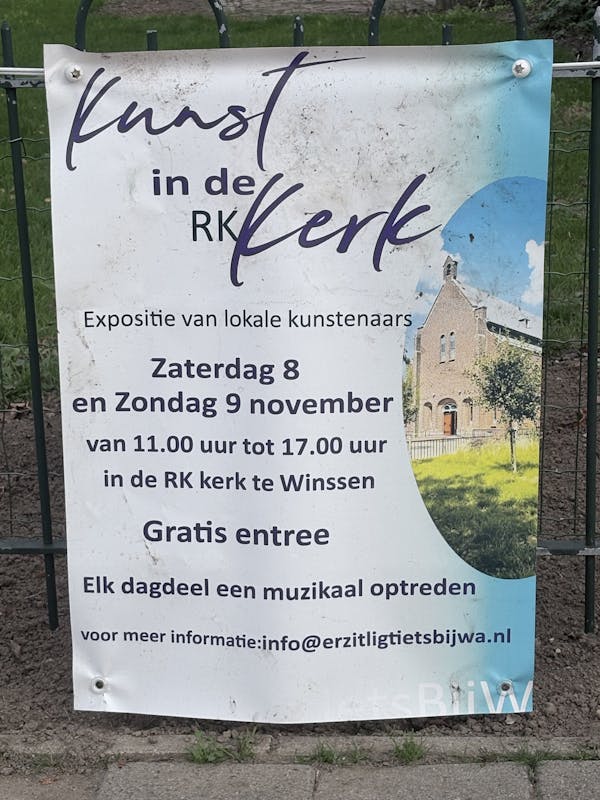 In de kerk in Winssen houdt de kringloopwinkel Er zit ligt iets Bijwa een tentoonstelling/verkoop van kunst, zoals schilderijen, beelden e.d.