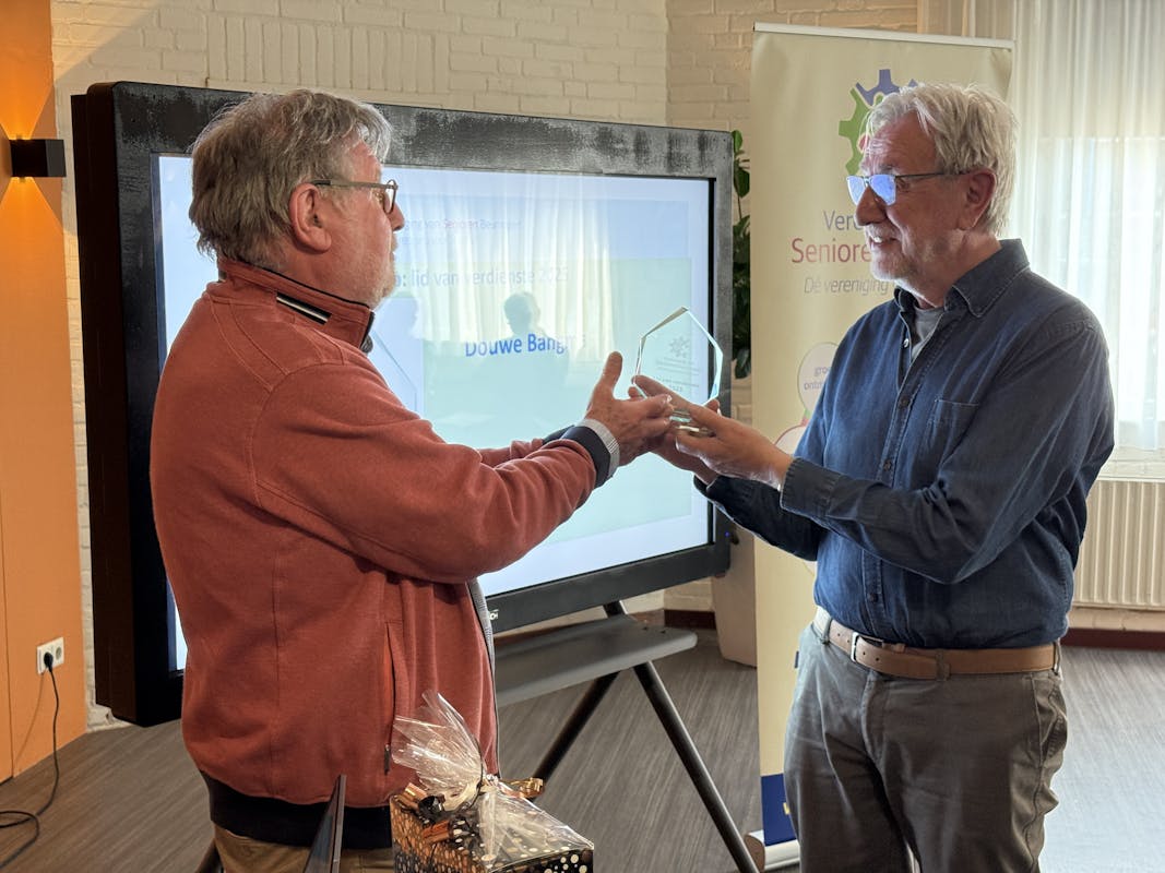 Ook werd tijdens de vergadering een “lid van verdienste” naar voren gehaald, te weten Douwe Bangma. Hij lijkt dan wel alleen op de achtergrond bezig te zijn, maar zijn grote verdienste is toch de digitale voorgrond. Want o.a. de website, maar ook de inschrijvingsmodule bij het Zomerfestival komen van zijn hand. En die kennis en uitvoering wordt zeer gewaardeerd door het Bestuur.