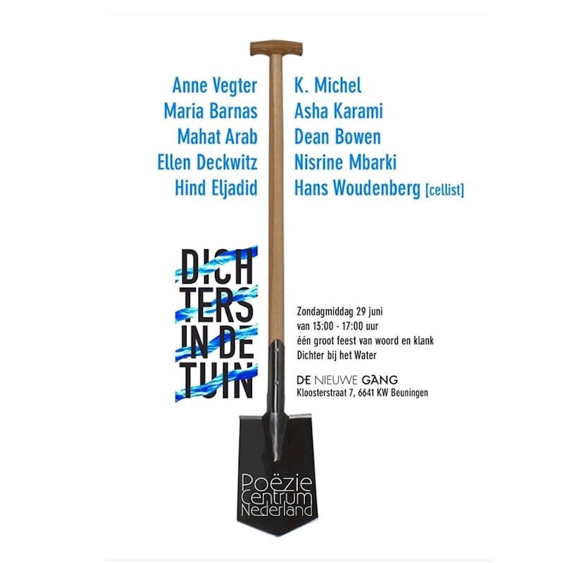 Dichters in de tuin is op zondag 29 juni van 13.00 tot 17.00 bij De Nieuwe Gang, Kloosterstraat 7 in Beuningen. Kaarten via Dichters in de Tuin 2025 - Ik Ben Aanwezig voor €12,50 per persoon (inclusief 0,35 kosten van Ideal).
