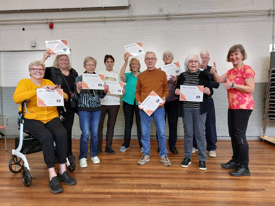 Na tien weken intensief oefeningen, onder leiding van Elly kregen wij als afsluiting de balansdans en een certificaat voor deelname aan deze training.