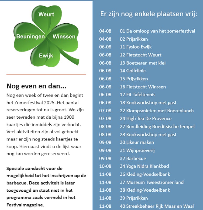 Nog een week of twee en dan begint het Zomerfestival 2025. |