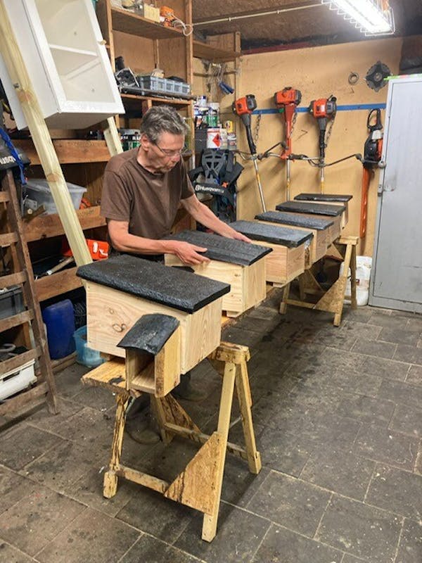 Zo zijn er op allerlei plaatsen in de gemeente Beuningen, zichtbaar en minder zichtbaar, producten van VLB te vinden. Intussen is Bertil aan de volgende egelwoning begonnen. Heeft hij nog niet genoeg van al die egelhuizen? ‘Welnee! Ik vind het heel leuk dat er zo veel besteld zijn,’ zegt hij. ‘En bestel er gerust nog maar een paar meer!’
