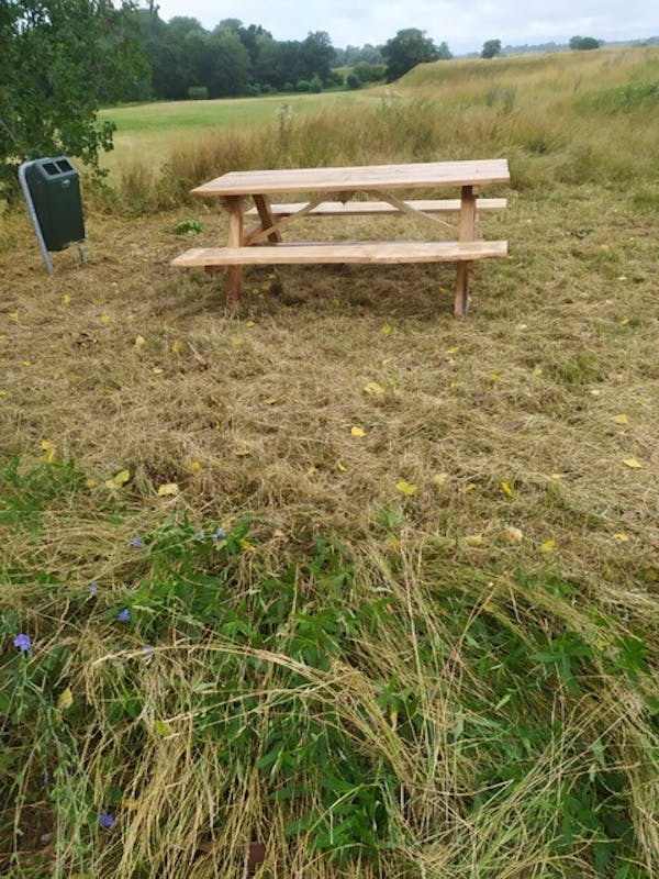 Aan de dijk, tussen Ewijk en Winssen, staat sinds kort weer een picknicktafel. De tafel die er stond was met veel geweld door vandalen uit z'n voegen getrokken. Hij was zó scheef dat repareren niet meer mogelijk was. De nieuw geplaatste tafel werd meteen enthousiast ontvangen door een paar oudere wandelaars. Het is een fijne plek om even uit te rusten van de klim naar de dijk.