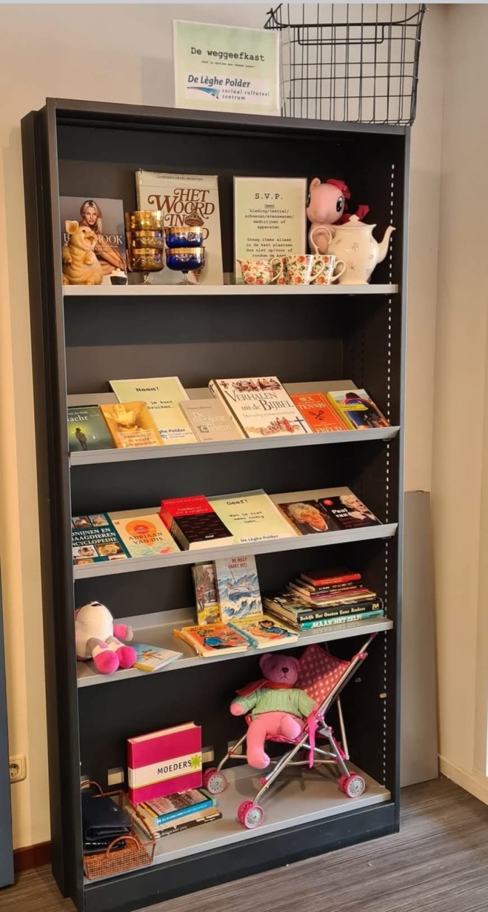 In onze weggeefkast worden regelmatig boeken geplaatst, maar ook meegenomen. Dus heb je thuis te weinig plaats in de boekenkast, ga er dan mee naar weggeefkast. Je maakt er andere inwoners héél blij mee!