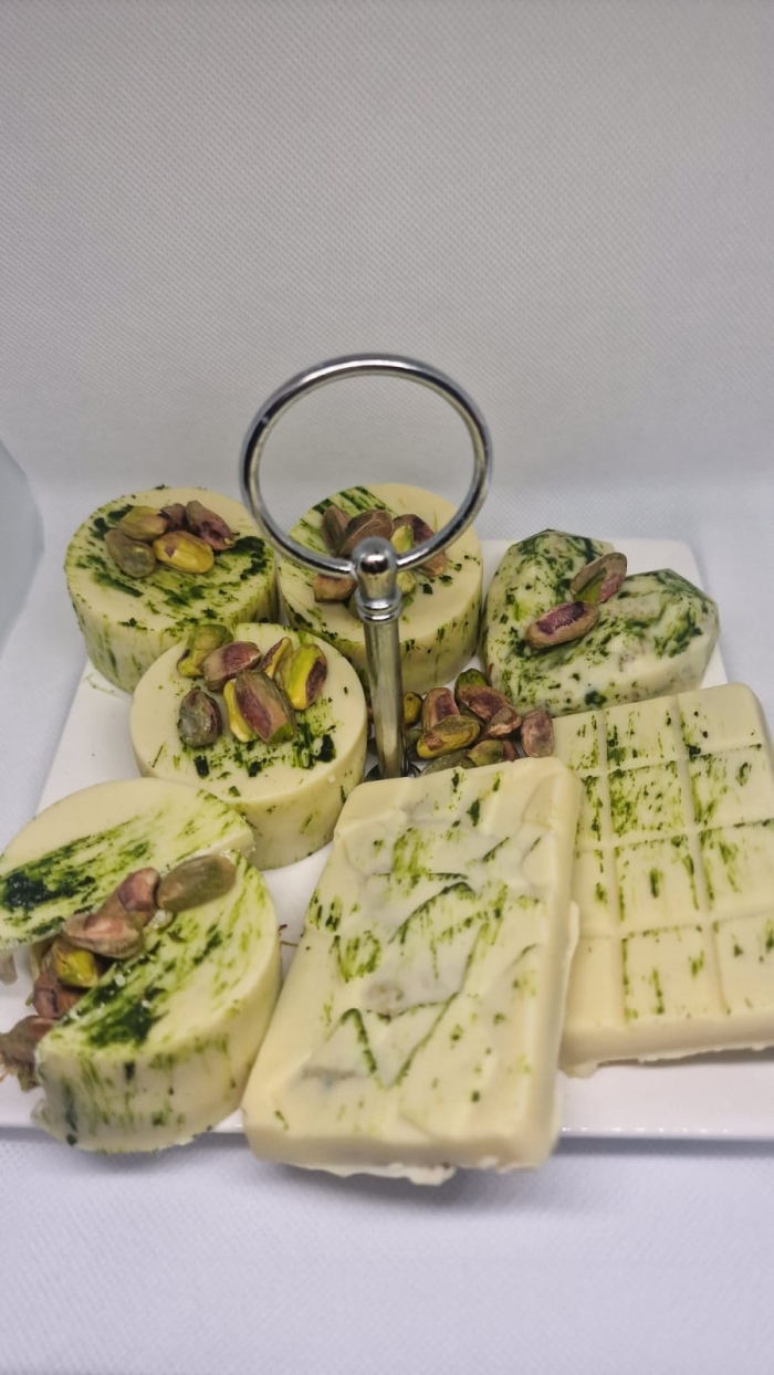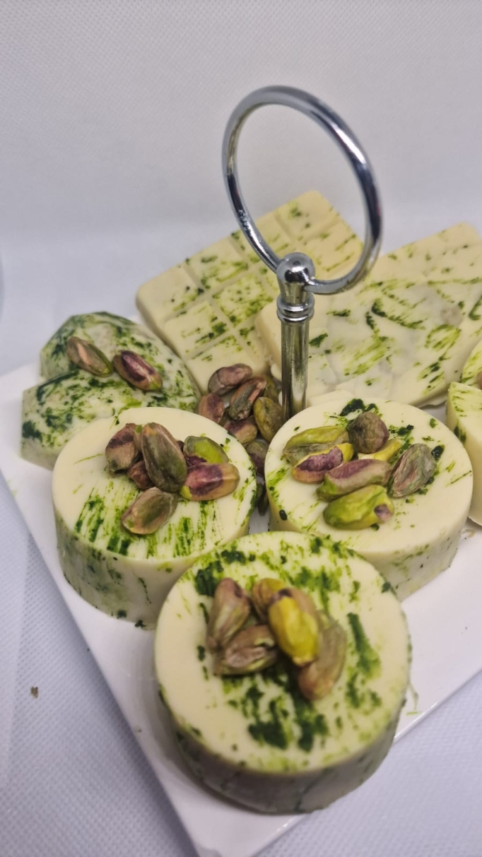 De combinatie van witte chocolade, knapperige knafeh en romige pistache is een van de nieuwste trends in Dubai's luxe chocoladewereld. Deze verfijnde mix biedt een unieke balans tussen zoet, krokant en nootachtig, wat resulteert in een exclusieve smaakbeleving. Perfect als luxe traktatie of als elegant cadeau!Ingrediënten
