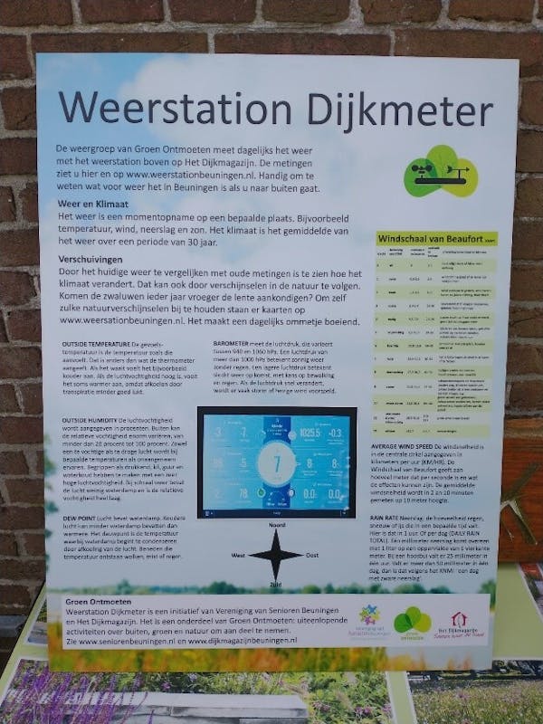 De Vereniging van Senioren Beuningen (VvSB) en Het Dijkmagazijn werken samen in het project Groen Ontmoeten om onder andere weer en klimaat van Beuningen in kaart te brengen. In de laatste jaren worden er steeds meer berichten over veranderingen van het klimaat in kranten en op de tv gepubliceerd.