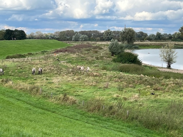 De rivier, de Waal , nooit hetzelfde, soms kabbelend , soms grijs, soms de ruimte vullend van dijk naar dijk.