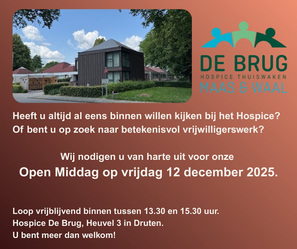 Het HospiceHospice De Brug Maas en Waal in Druten wil een plek zijn waarmensen in een huiselijke warme sfeer in alle rust afscheid kunne......